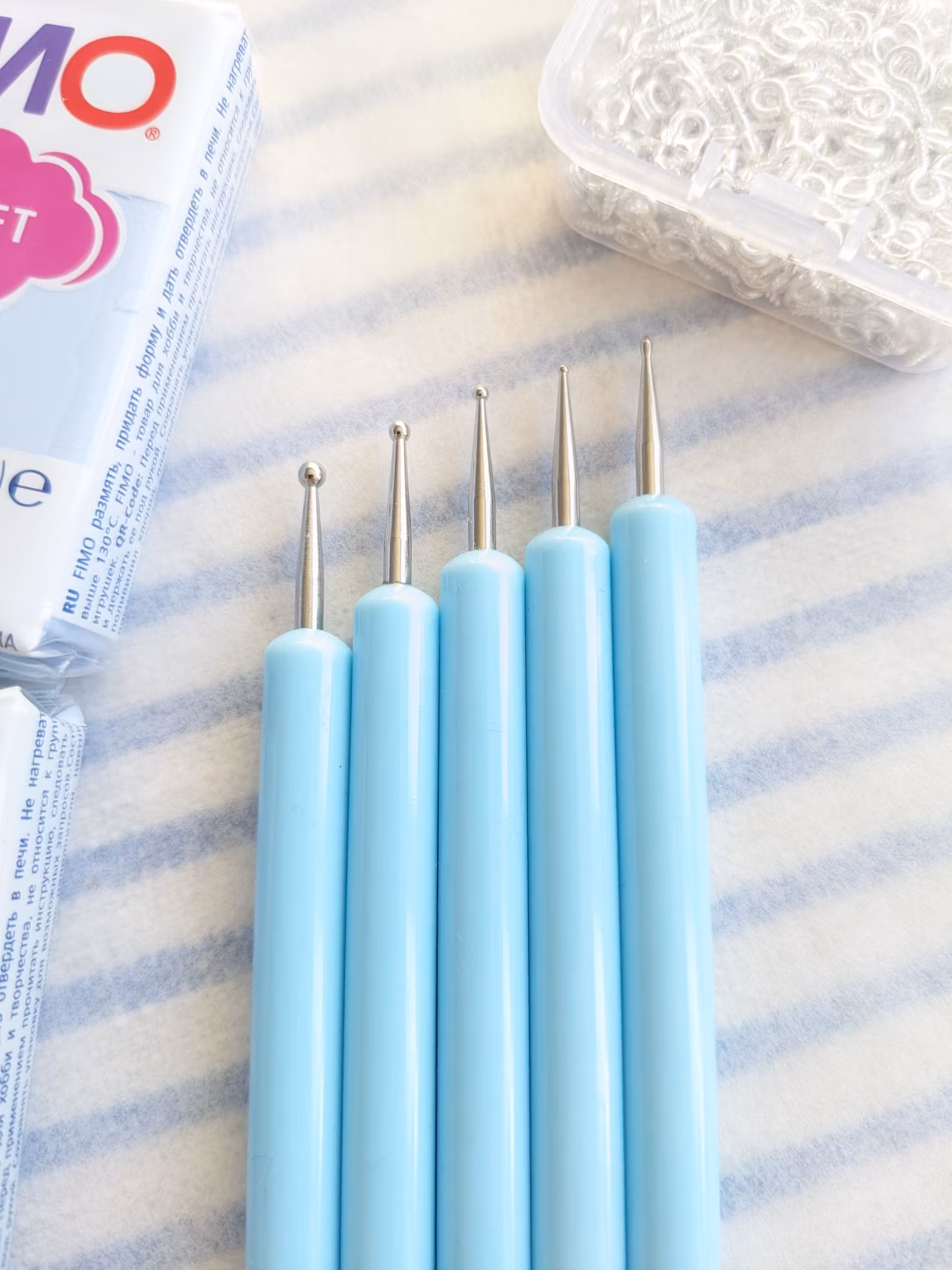 Boll-verktyg/modelleringsverktyg 5 pcs Produkten är tyvärr slut i lager. :( Boll-verktyg/modelleringsverktyg Fem st delar med olika storlekKulorna är mellan 2,5 mm- 0,8 mmSilikonspetsarna för modellering är i olika modeller/former
