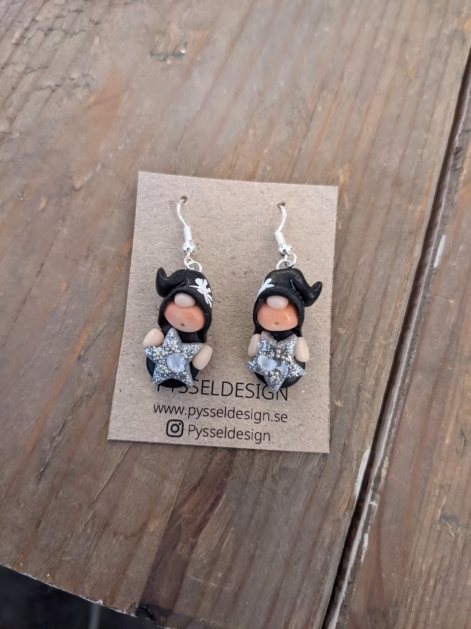 Handgjorda örhängen med Svarta rocknissar med glittriga stjärnor